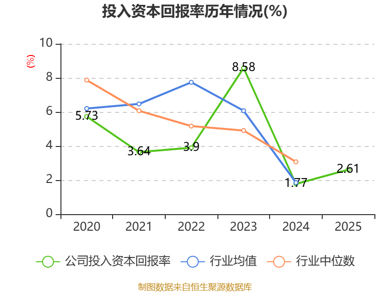 数据显示,2025年公司加权平均净资产收益率为3.42%,较上年同期上升1.3个百分点。公司2025年投入资本回报率为2.61%,较上年同期上升0.84个百分点。