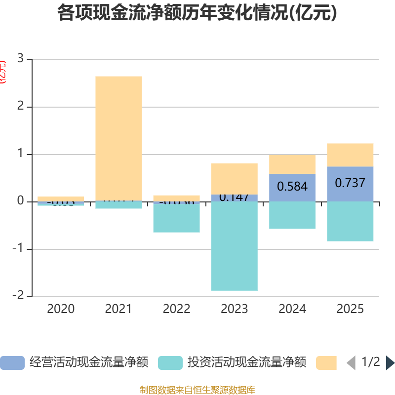 截至2025年,公司经营活动现金流净额为7365.71万元,同比增长26.15%;筹资活动现金流净额4868.68万元,同比增加913.71万元;投资活动现金流净额-8402.92万元,上年同期为-5761.2万元。
