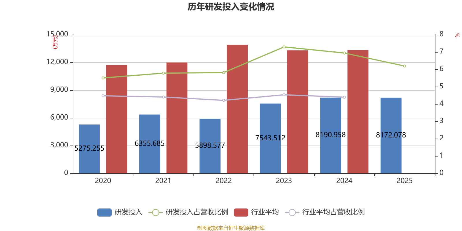 2025年全年,公司研发投入金额为8172.08万元,同比下降0.23%;研发投入占营业收入比例为6.19%,相比上年同期下降0.75个百分点。此外,公司全年研发投入资本化率为0%。