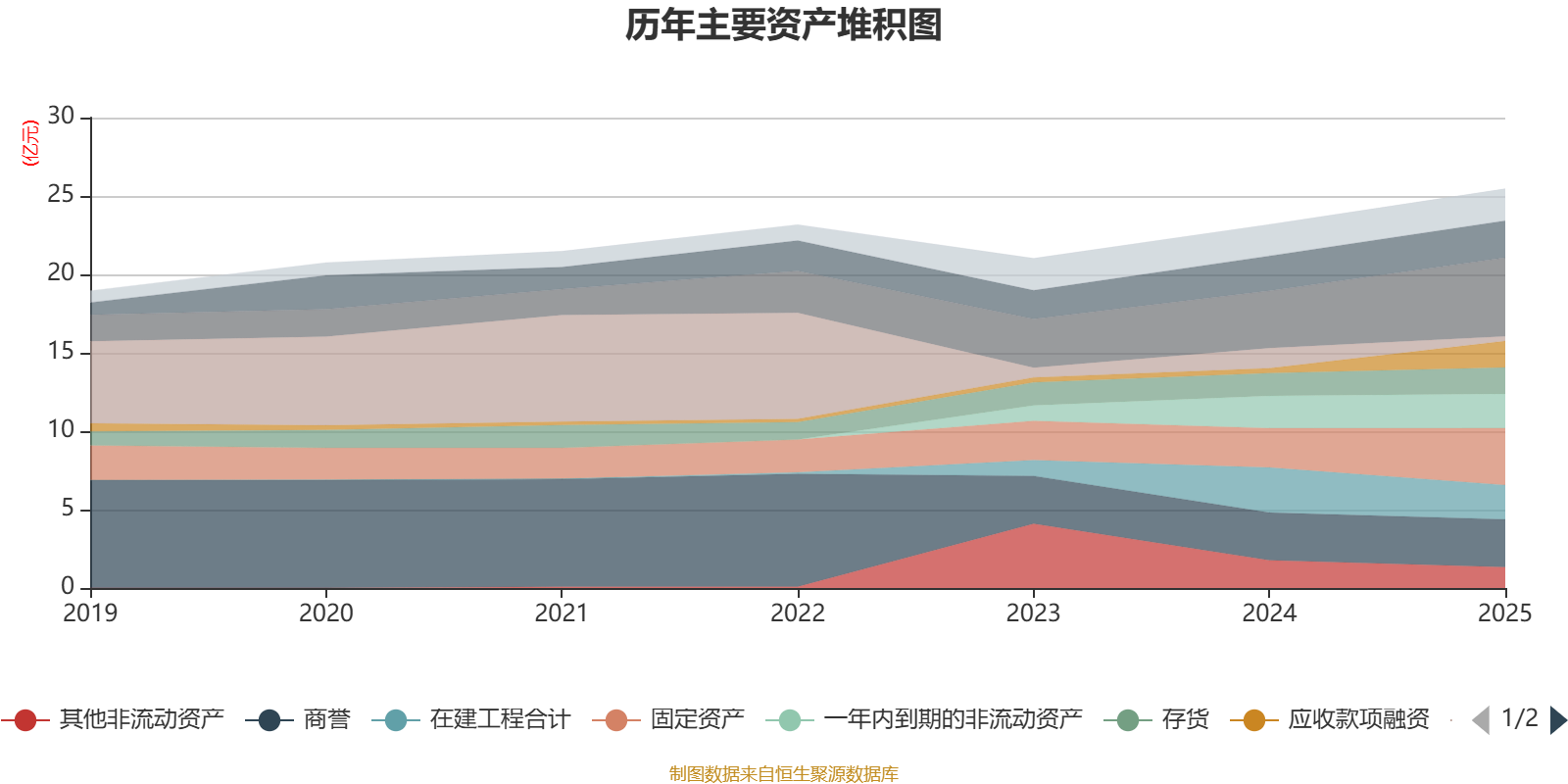 资产重大变化方面,截至2025年末,公司应收款项融资较上年末增加460.02%,占公司总资产比重上升5.35个百分点;交易性金融资产合计较上年末减少76.6%,占公司总资产比重下降4.35个百分点;应收票据及应收账款较上年末增加37.35%,占公司总资产比重上升3.95个百分点;在建工程合计较上年末减少23.58%,占公司总资产比重下降3.77个百分点。