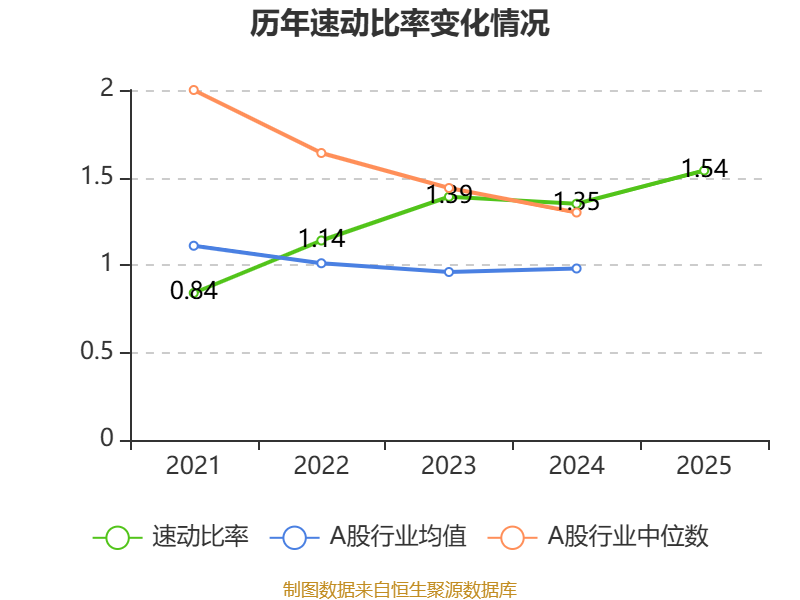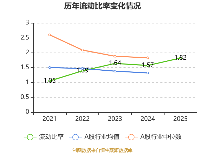 2025年,公司流动比率为1.82,速动比率为1.54。