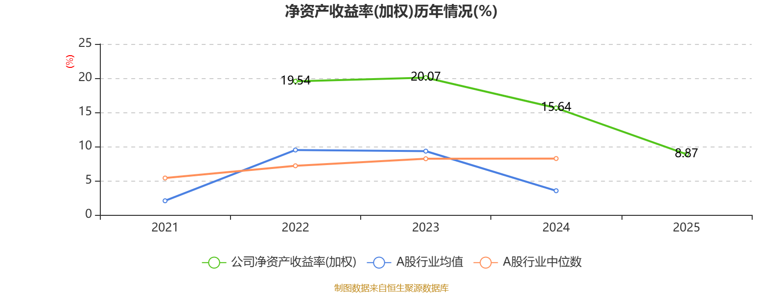 数据显示,2025年公司平均净资产收益率为8.87%,较上年同期下降6.77个百分点。
