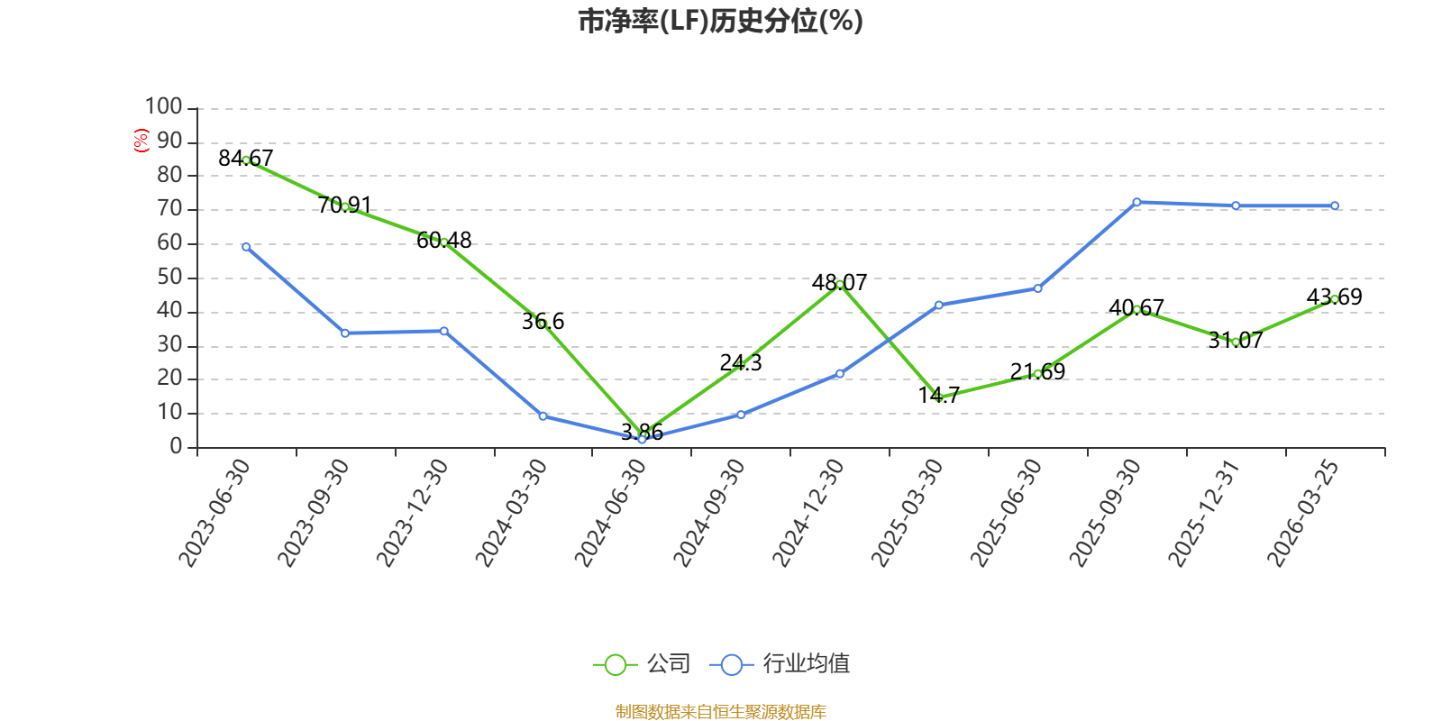 市盈率、市净率为负时,不显示当期分位数,会导致折线图中断。