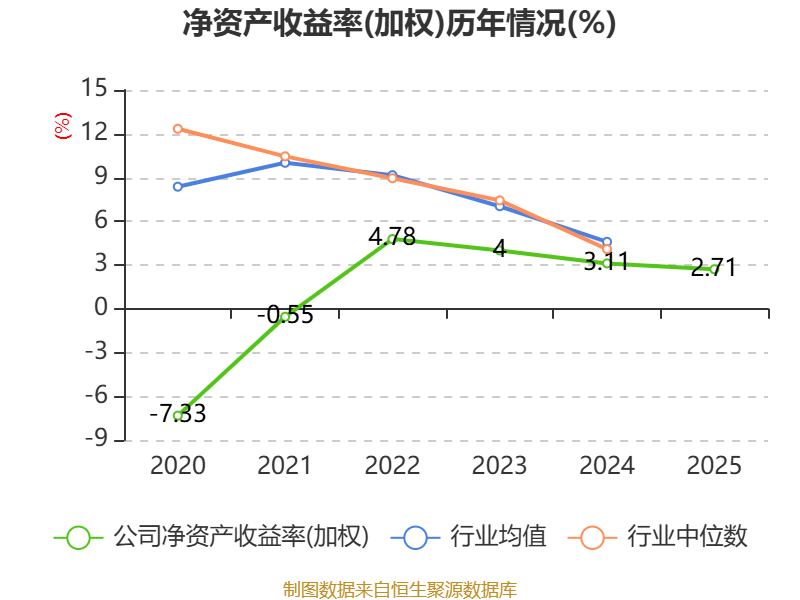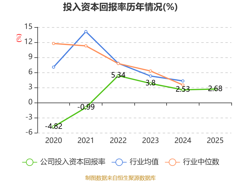 数据显示,2025年公司加权平均净资产收益率为2.71%,较上年同期下降0.4个百分点。公司2025年投入资本回报率为2.68%,较上年同期上升0.15个百分点。