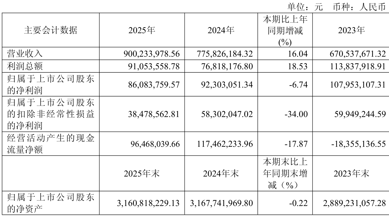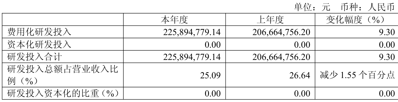 2025年全年,公司研发投入金额为2.26亿元,同比增长9.3%;研发投入占营业收入比例为25.09%,相比上年同期下降1.55个百分点。此外,公司全年研发投入资本化率为0%。
