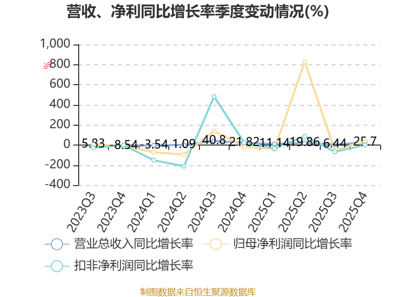 资产重大变化方面,截至2025年末,公司交易性金融资产合计较上年末减少16.62%,占公司总资产比重下降4.8个百分点;存货较上年末增加20.18%,占公司总资产比重上升2.06个百分点;应收票据及应收账款较上年末增加17.89%,占公司总资产比重上升1.14个百分点;货币资金较上年末减少16.12%,占公司总资产比重下降1.07个百分点。