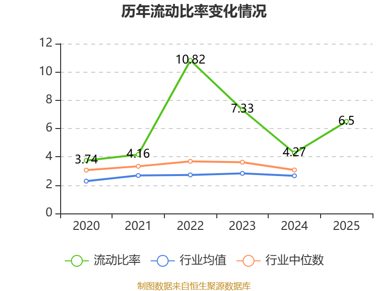 2025年,公司流动比率为6.5,速动比率为5.62。