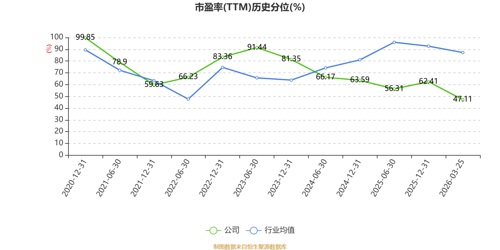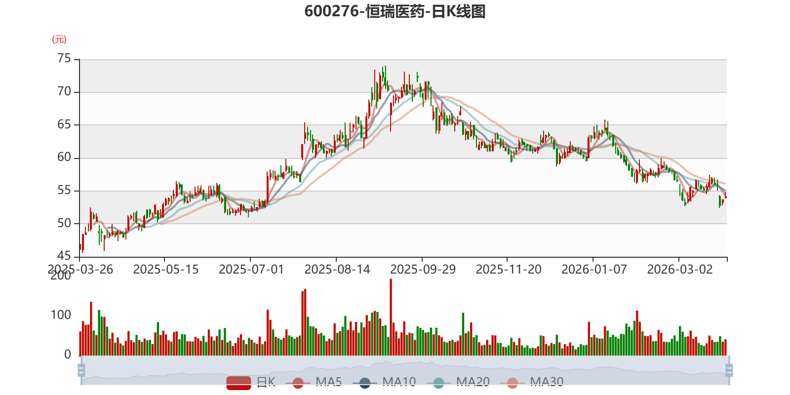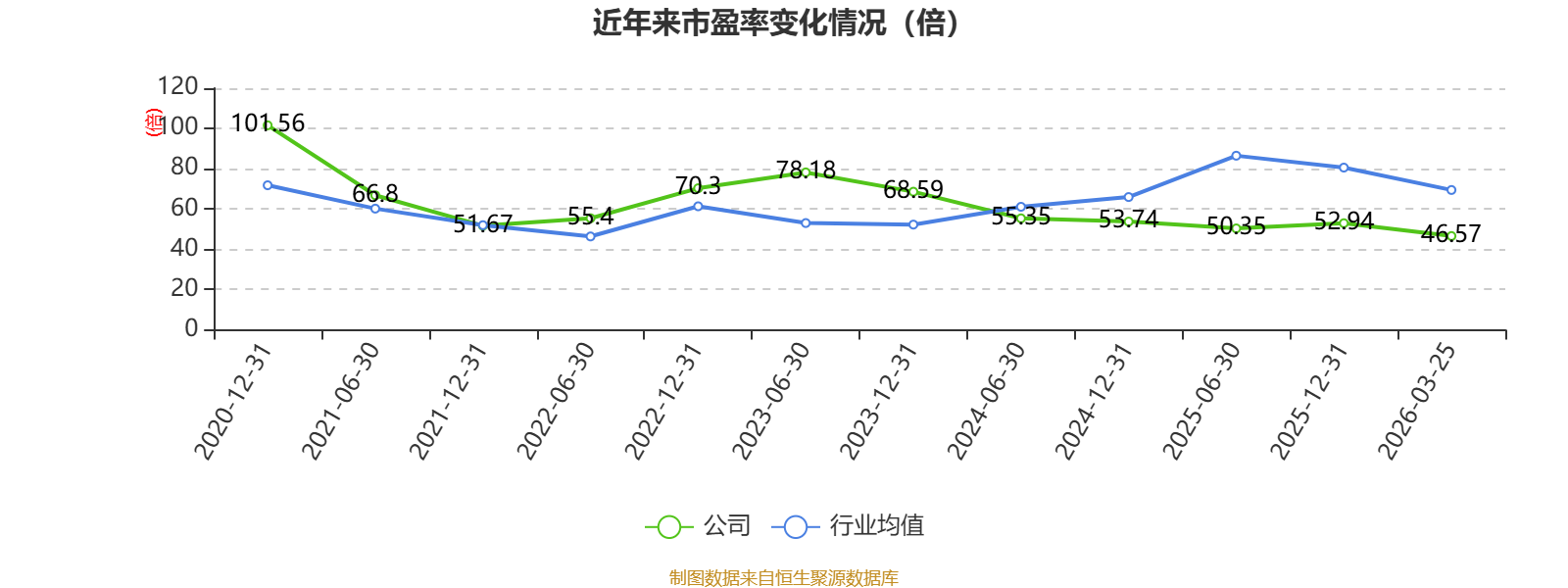 以3月25日收盘价计算,恒瑞医药目前市盈率(TTM)约为46.57倍,市净率(LF)约5.86倍,市销率(TTM)约11.35倍。