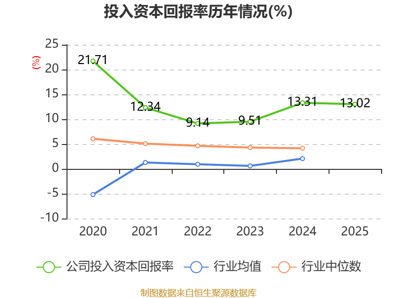 数据显示,2025年公司加权平均净资产收益率为14.26%,较上年同期下降0.47个百分点。公司2025年投入资本回报率为13.02%,较上年同期下降0.29个百分点。