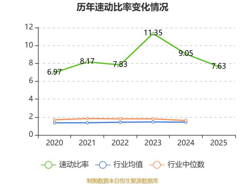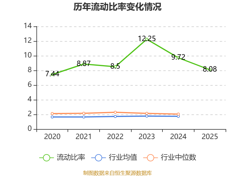 2025年,公司流动比率为8.08,速动比率为7.63。
