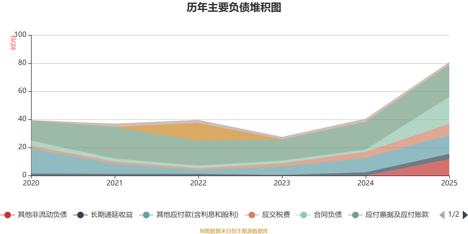 负债重大变化方面,截至2025年末,公司合同负债较上年末增加1096.89%,占公司总资产比重上升2.42个百分点;其他非流动负债占公司总资产的1.67%,上年末为0;应付票据及应付账款较上年末增加15.41%,占公司总资产比重下降0.67个百分点;应交税费较上年末增加88.69%,占公司总资产比重上升0.3个百分点。