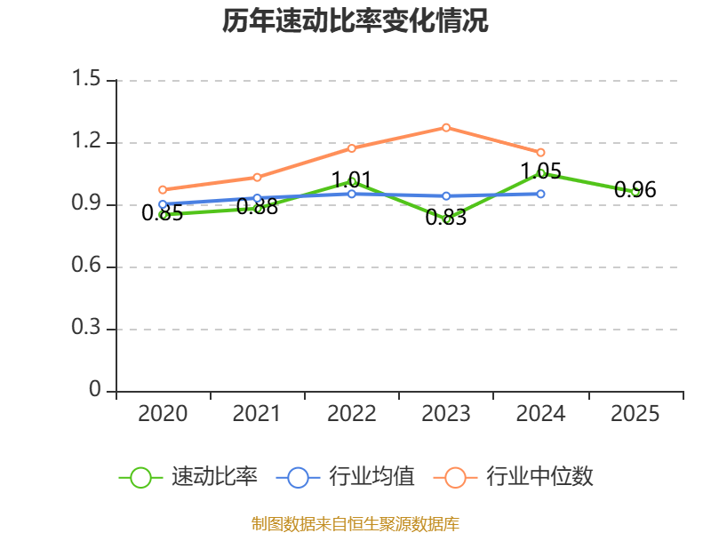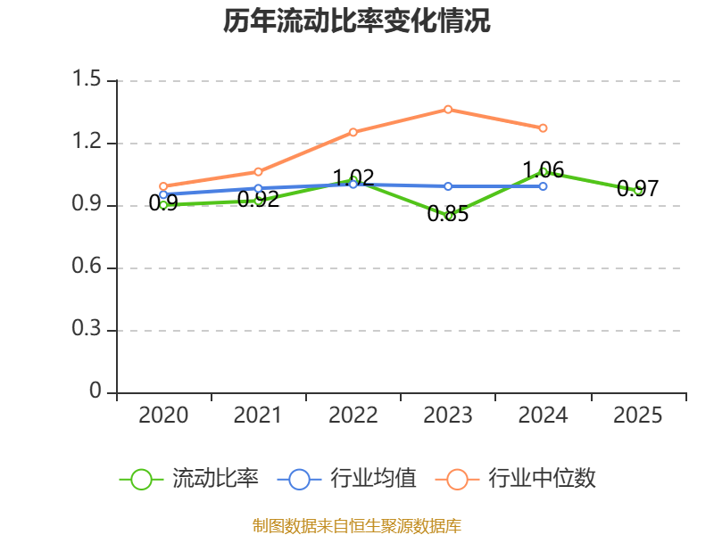 2025年,公司流动比率为0.97,速动比率为0.96。