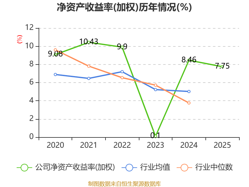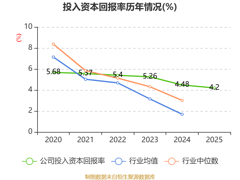 数据显示,2025年公司加权平均净资产收益率为7.75%,较上年同期下降0.71个百分点。公司2025年投入资本回报率为4.2%,较上年同期下降0.28个百分点。