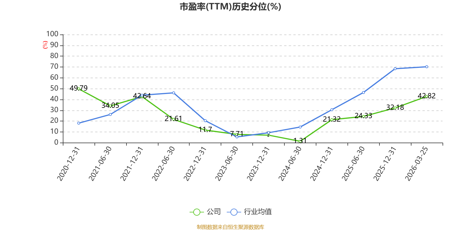 市盈率、市净率为负时,不显示当期分位数,会导致折线图中断。