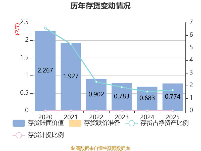 从存货变动来看,截至2025年末,公司存货账面价值为7739.57万元,占净资产的1.64%,较上年末增加913.04万元。公司本期没有计提存货跌价准备。