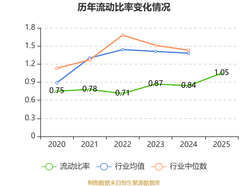 2025年,公司流动比率为1.05,速动比率为0.96。