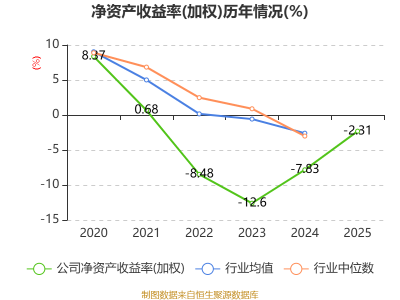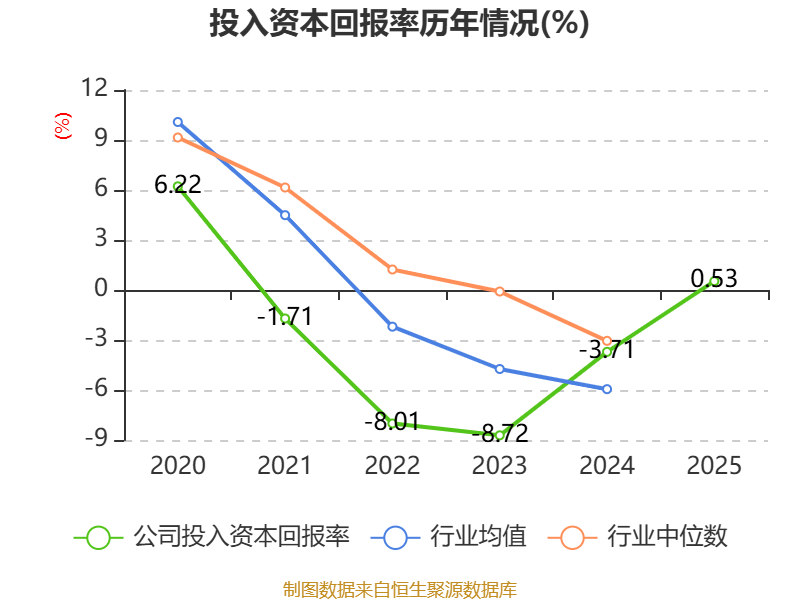 数据显示,2025年公司加权平均净资产收益率为-2.31%,较上年同期上升5.52个百分点。公司2025年投入资本回报率为0.53%,较上年同期上升4.24个百分点。