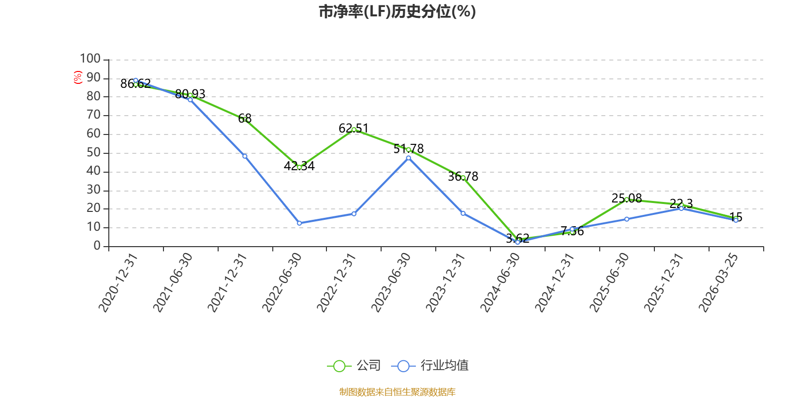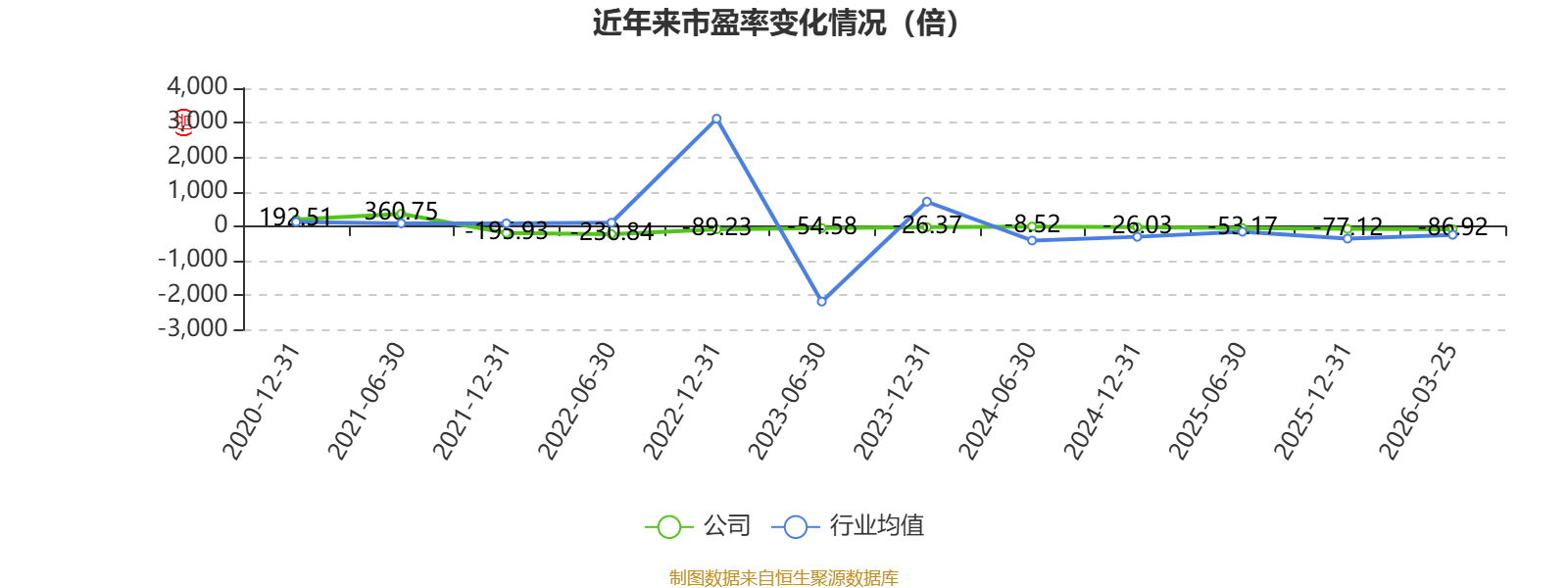 市盈率、市净率为负时,不显示当期分位数,会导致折线图中断。