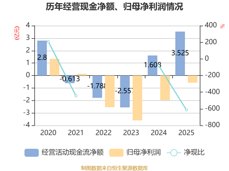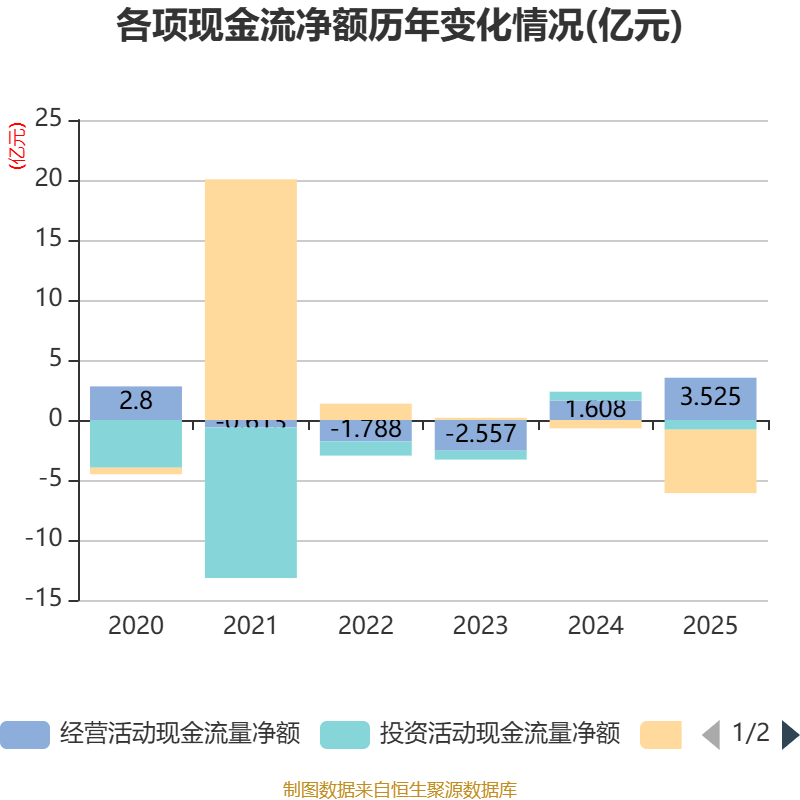 截至2025年,公司经营活动现金流净额为3.53亿元,同比增长119.16%;筹资活动现金流净额-5.29亿元,同比减少4.59亿元;投资活动现金流净额-8062.07万元,上年同期为7476.25万元。