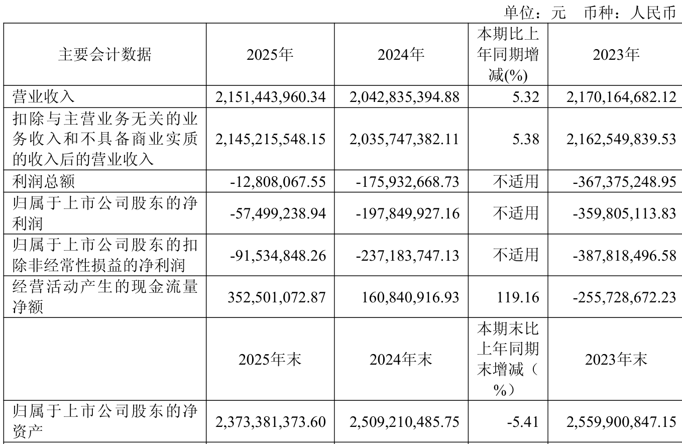 中证智能财讯安恒信息(688023)3月26日披露2025年年度报告。2025年,公司实现营业总收入21.51亿元,同比增长5.32%;归母净利润亏损5749.92万元,上年同期亏损1.98亿元;扣非净利润亏损9153.48万元,上年同期亏损2.37亿元;经营活动产生的现金流量净额为3.53亿元,同比增长119.16%;报告期内,安恒信息基本每股收益为-0.57元,加权平均净资产收益率为-2.31%。