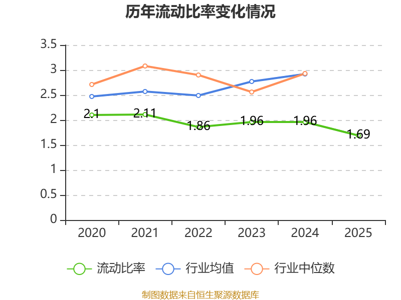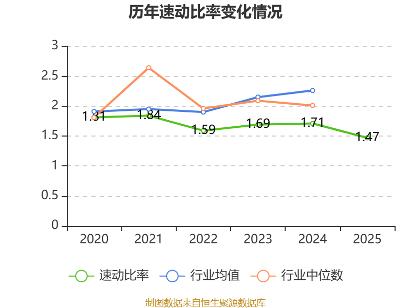 2025年,公司流动比率为1.69,速动比率为1.47。