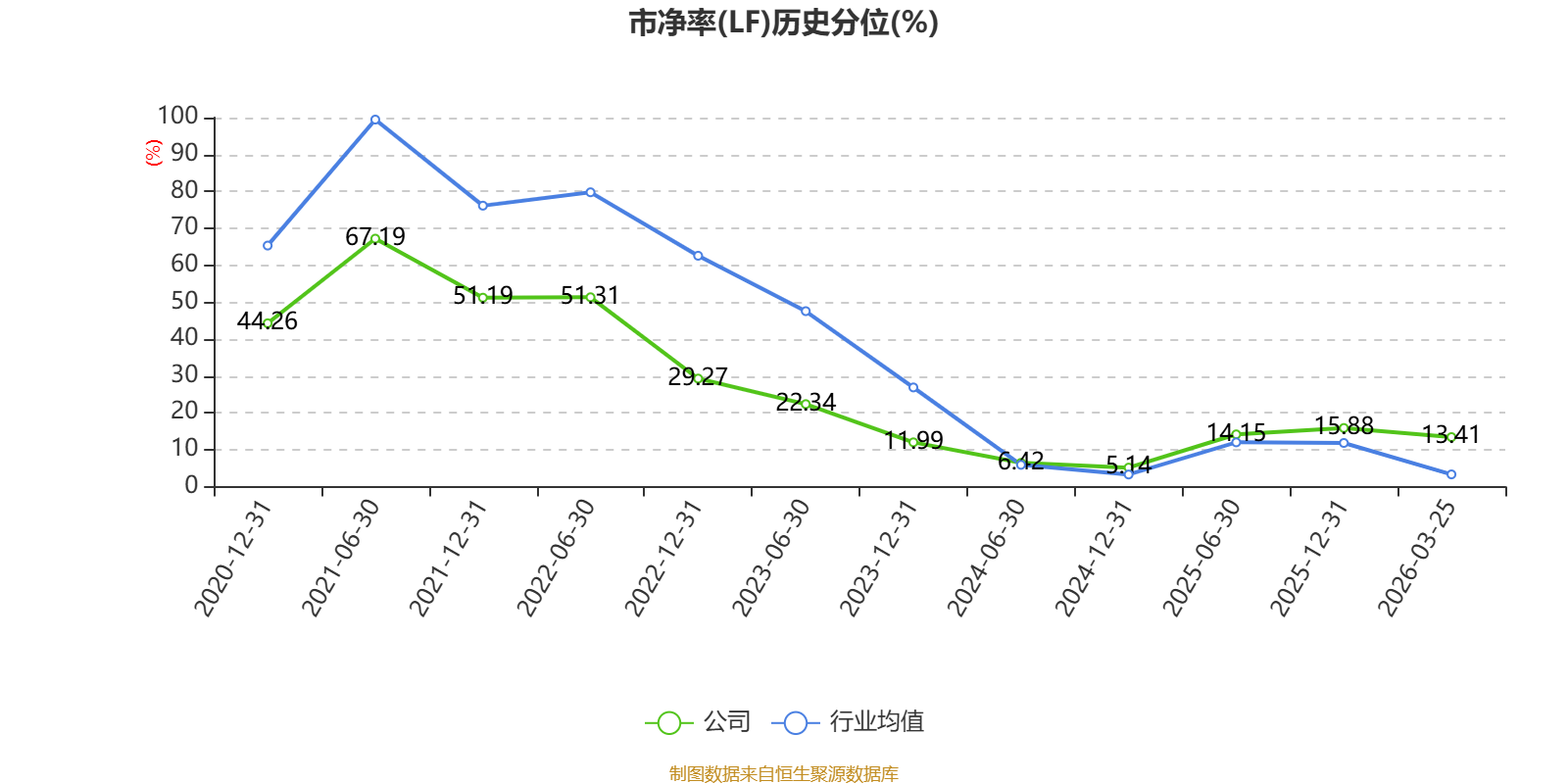 市盈率、市净率为负时,不显示当期分位数,会导致折线图中断。