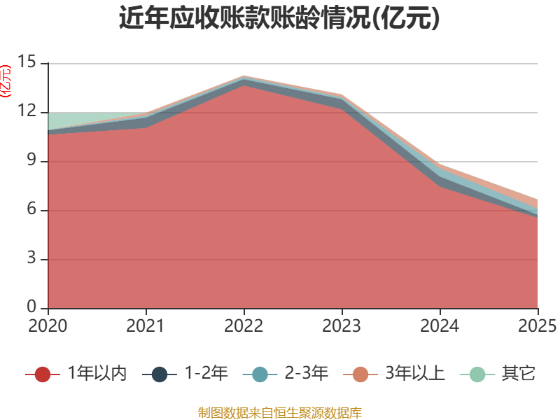 从应收账款账龄结构来看,截至2025年末,公司账龄在1年以内的应收账款余额为5.51亿元,较上年末下降1.91亿元,占应收账款总额比例为82.99%,较上年末下降1.3个百分点。