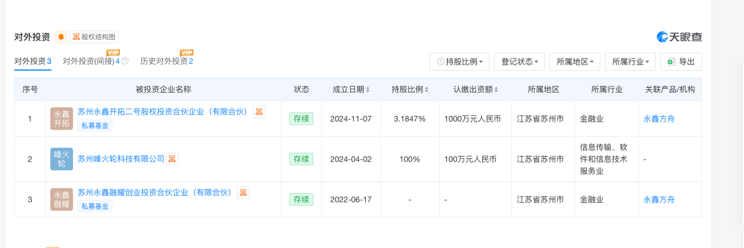 2024年7月,张雪峰首次以LP(有限合伙人)身份出资,入股苏州永鑫融耀基金。2025年2月,他再次出手,通过峰学蔚来出资1000万元,成为苏州永鑫开拓二号股权投资合伙企业的股东。这只基金的管理机构永鑫方舟,是一家专注硬科技的投资机构,累计出手的73家公司中,近40家与集成电路直接相关,包括中际旭创、东微半导、纳芯微等已上市公司。