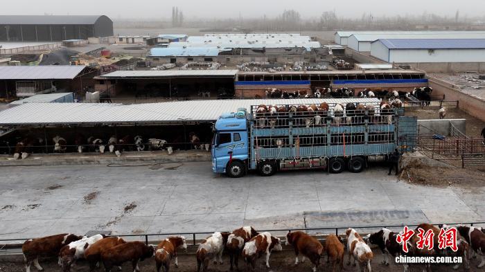 图为临泽县沙河镇兰化养殖小区肉牛装车准备发往重庆市场。临泽县融媒体中心供图