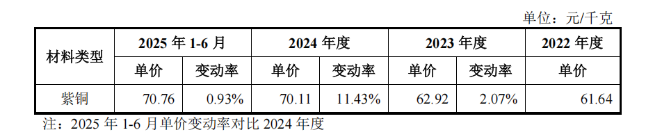尼索科表示,公司产品价格正伴随新能源汽车行业的降本趋势而下降。以主力产品转簧为例,销售单价从2022年的4.15元/个降至2025年上半年的3.84元/个。从成本端看,铜材占公司原材料采购总额的比例从2022年的49.68%升至2025年上半年的63.40%,铜价剧烈波动直接牵动生产成本神经。公司寄望于通过二代转簧、卷制技术等工艺创新来降本增效,但并未披露这些创新产品目前的收入占比及具体毛利贡献,投资者难以评估其能否对冲传统产品降价及原材料涨价的压力。