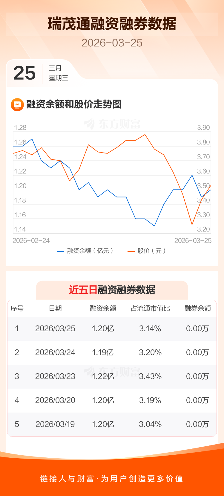 交易所最新数据显示,瑞茂通于2026年3月25日获融资买入447.85万元,融资偿还336.80万元,当日融资净买入111.05万元。目前,该股融资余额1.20亿,占流通市值比例为3.14%。