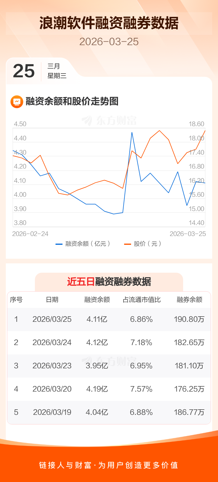 交易所最新数据显示,浪潮软件于2026年3月25日获融资买入7109.68万元,融资偿还7195.87万元,当日融资净偿还86.19万元。目前,该股融资余额4.11亿,占流通市值比例为6.86%。