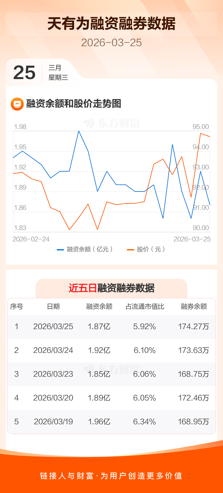 交易所最新数据显示,天有为于2026年3月25日获融资买入1120.02万元,融资偿还1708.88万元,当日融资净偿还588.86万元。目前,该股融资余额1.87亿,占流通市值比例为5.92%。