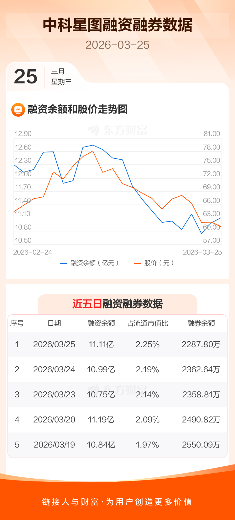 交易所最新数据显示,中科星图于2026年3月25日获融资买入8902.34万元,融资偿还7648.22万元,当日融资净买入1254.12万元。目前,该股融资余额11.11亿,占流通市值比例为2.25%。
