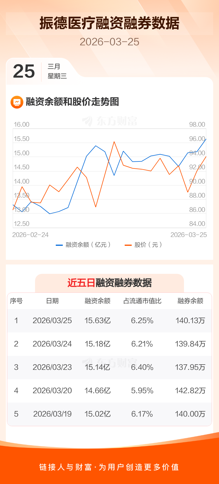 交易所最新数据显示,振德医疗于2026年3月25日获融资买入1.33亿元,融资偿还8760.96万元,当日融资净买入4549.56万元。目前,该股融资余额15.63亿,占流通市值比例为6.25%。