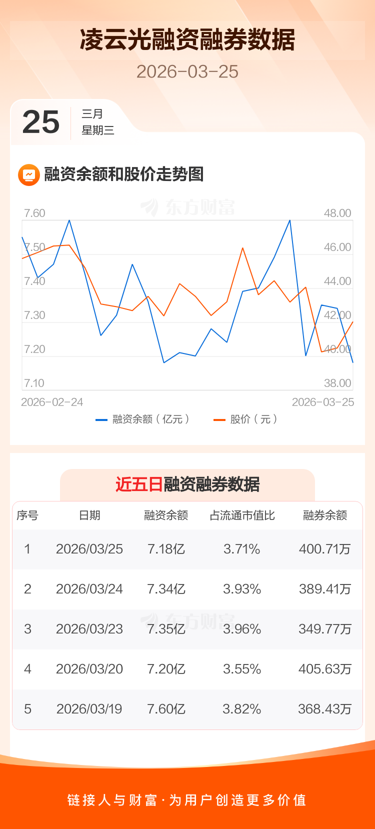 交易所最新数据显示,凌云光于2026年3月25日获融资买入5504.41万元,融资偿还7057.85万元,当日融资净偿还1553.44万元。目前,该股融资余额7.18亿,占流通市值比例为3.71%。