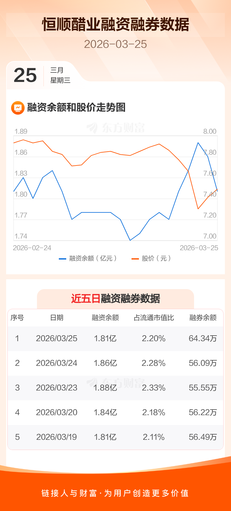 交易所最新数据显示,恒顺醋业于2026年3月25日获融资买入473.41万元,融资偿还969.73万元,当日融资净偿还496.32万元。目前,该股融资余额1.81亿,占流通市值比例为2.20%。