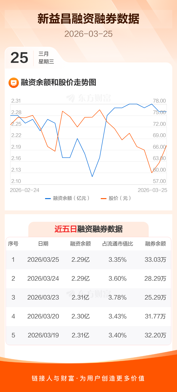 交易所最新数据显示,新益昌于2026年3月25日获融资买入791.34万元,融资偿还831.89万元,当日融资净偿还40.55万元。目前,该股融资余额2.29亿,占流通市值比例为3.35%。
