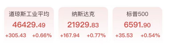 周三美股延续涨势,中东冲突缓和的前景缓解了投资者对能源供应长期中断的部分担忧。截至收盘,道琼斯工业平均指数上涨305.43点,涨幅0.66%,收于46429.49点,纳斯达克综合指数上涨0.77%,收于21929.83点,标普500指数上涨0.54%,收于6591.90点。