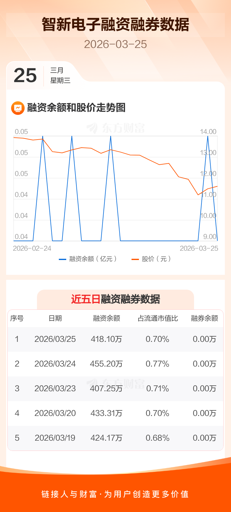 交易所最新数据显示,智新电子于2026年3月25日获融资买入39.31万元,融资偿还76.41万元,当日融资净偿还37.1万元。目前,该股融资余额418.10万,占流通市值比例为0.70%。