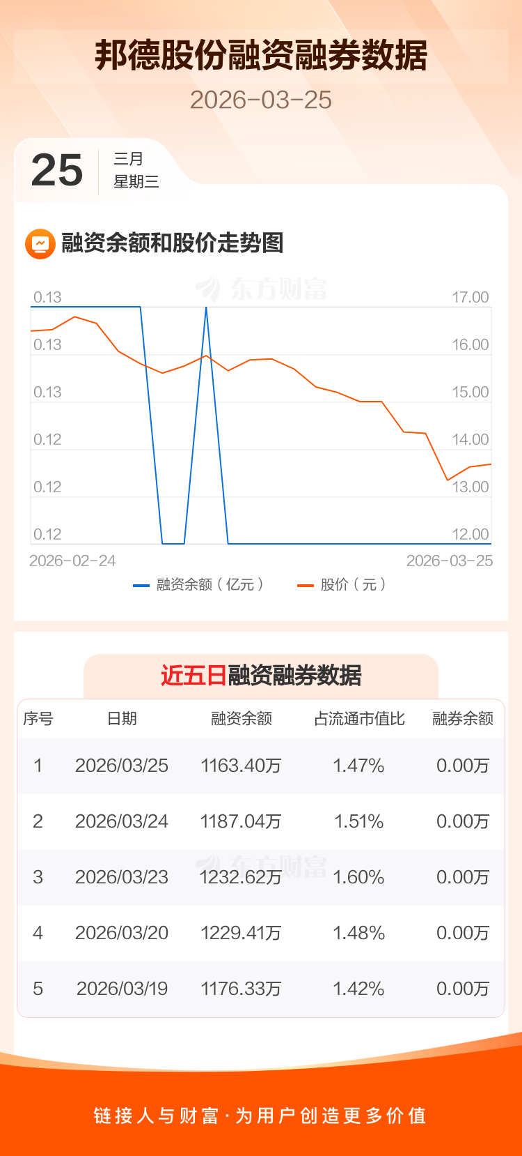 交易所最新数据显示,邦德股份于2026年3月25日获融资买入15.06万元,融资偿还38.70万元,当日融资净偿还23.64万元。目前,该股融资余额1163.40万,占流通市值比例为1.47%。