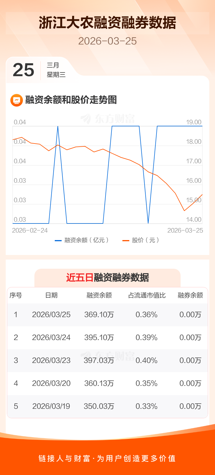交易所最新数据显示,浙江大农于2026年3月25日获融资买入8.64万元,融资偿还34.64万元,当日融资净偿还26万元。目前,该股融资余额369.10万,占流通市值比例为0.36%。