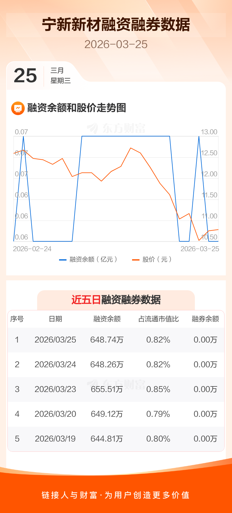 交易所最新数据显示,宁新新材于2026年3月25日获融资买入3.52万元,融资偿还3.04万元,当日融资净买入4778元。目前,该股融资余额648.74万,占流通市值比例为0.82%。