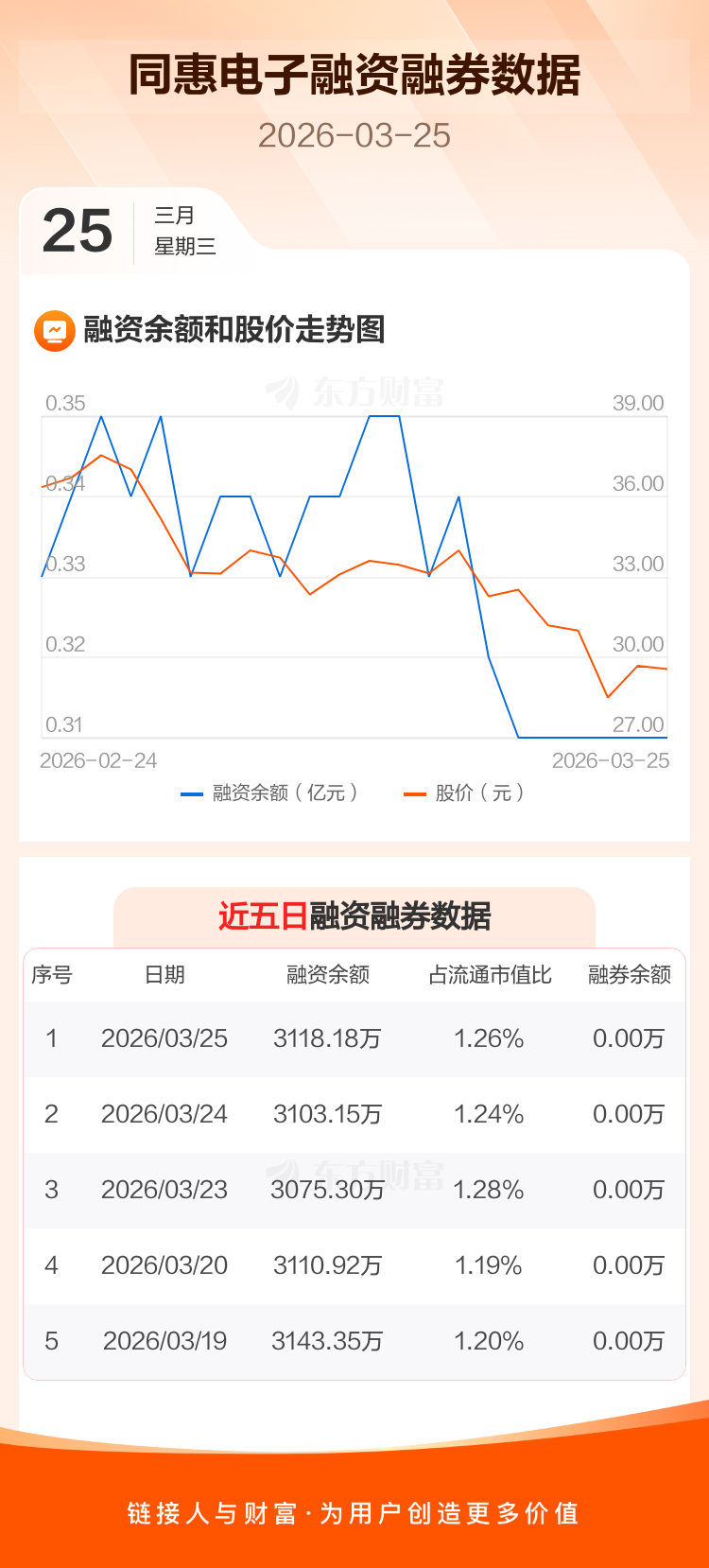 同惠电子:融资净买入15.03万元,融资余额3118.18万元