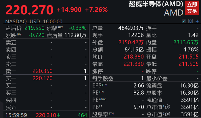 大型科技股普涨。Arm大涨超16%,AMD、英特尔涨超7%,亚马逊涨超2%,英伟达涨近2%,奈飞、高通涨超1%。