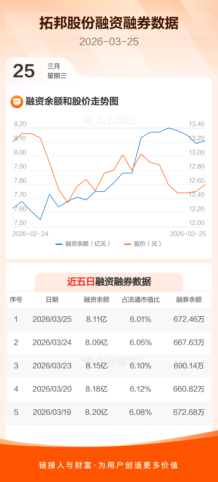 交易所最新数据显示,拓邦股份于2026年3月25日获融资买入1492.15万元,融资偿还1327.84万元,当日融资净买入164.31万元。目前,该股融资余额8.11亿,占流通市值比例为6.01%。