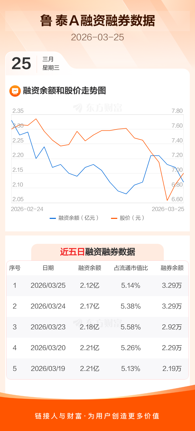 交易所最新数据显示,鲁 泰A于2026年3月25日获融资买入547.08万元,融资偿还1075.88万元,当日融资净偿还528.8万元。目前,该股融资余额2.12亿,占流通市值比例为5.14%。
