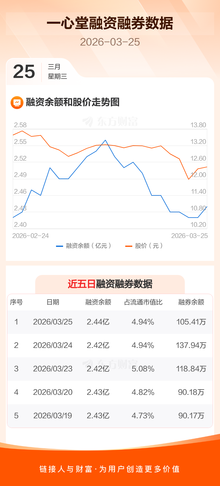 一心堂:融资净买入137.08万元,融资余额2.44亿元