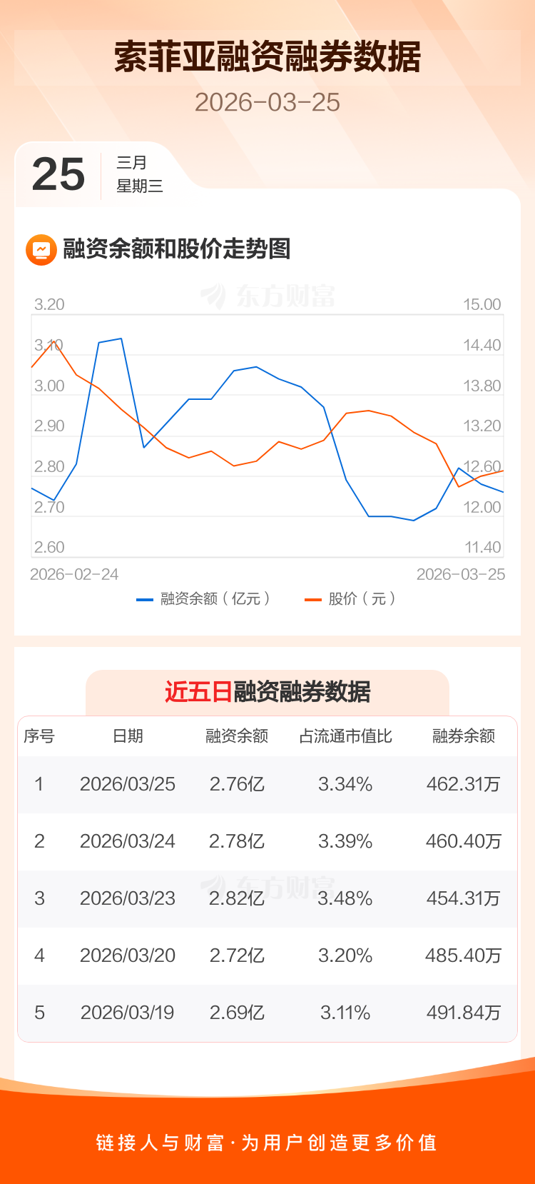 交易所最新数据显示,索菲亚于2026年3月25日获融资买入456.50万元,融资偿还733.26万元,当日融资净偿还276.76万元。目前,该股融资余额2.76亿,占流通市值比例为3.34%。