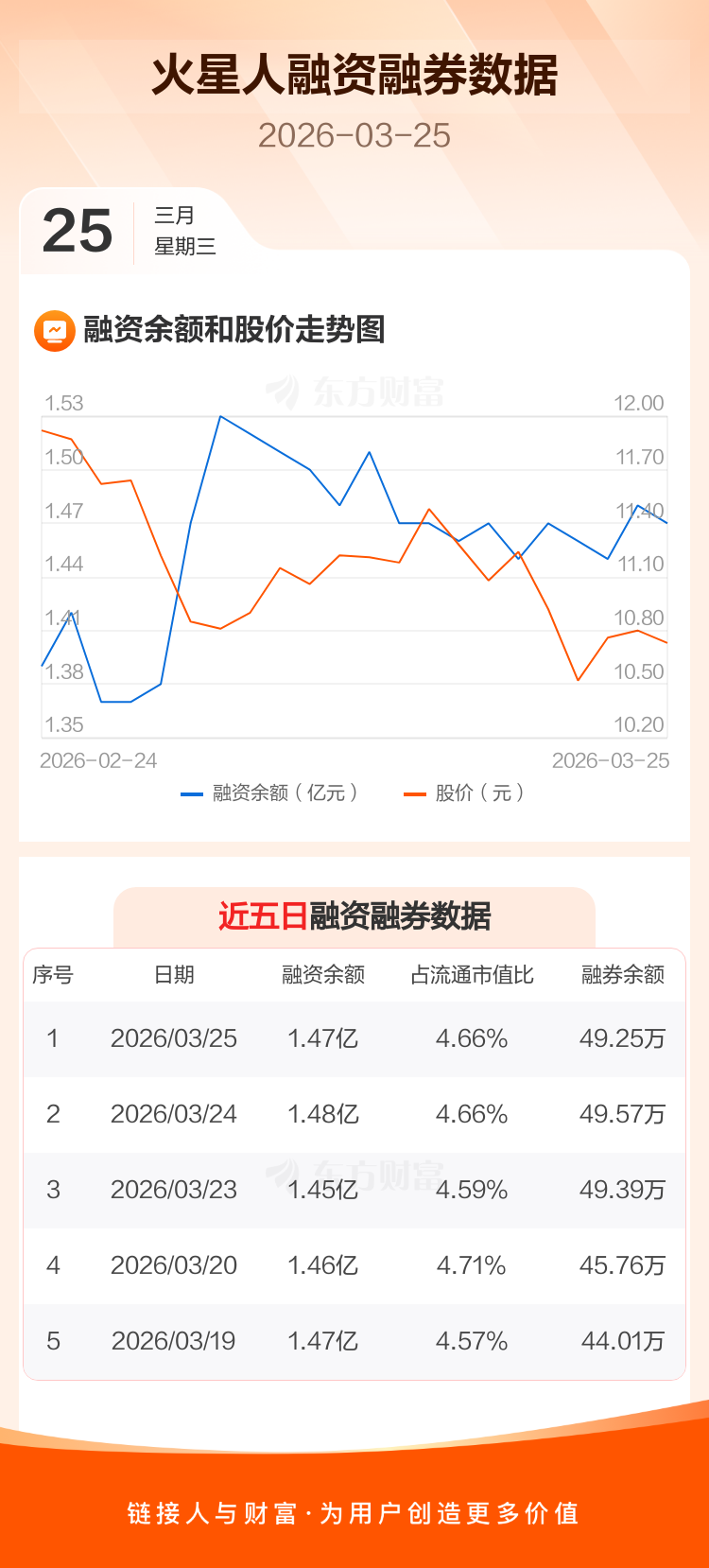 交易所最新数据显示,火星人于2026年3月25日获融资买入382.52万元,融资偿还499.28万元,当日融资净偿还116.76万元。目前,该股融资余额1.47亿,占流通市值比例为4.66%。